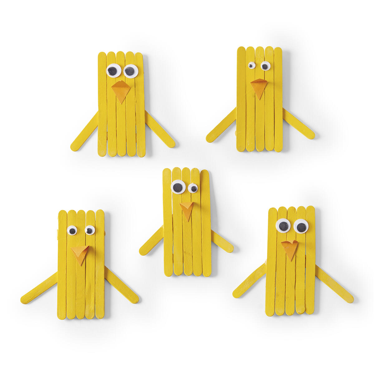 - Limma ihop glasspinnarna till kroppen på kycklingen genom att limma en glasspinne vågrätt på baksidan.