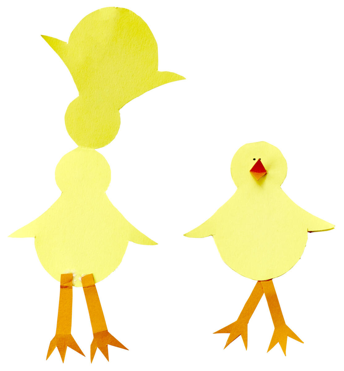 - Vik kartongen dubbel. Rita mönstret av en kyckling och klipp ut.