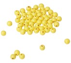 - Klipp av ett långt snöre resårsnodd. Trä på varannan träkula och varannan gul träpärla.