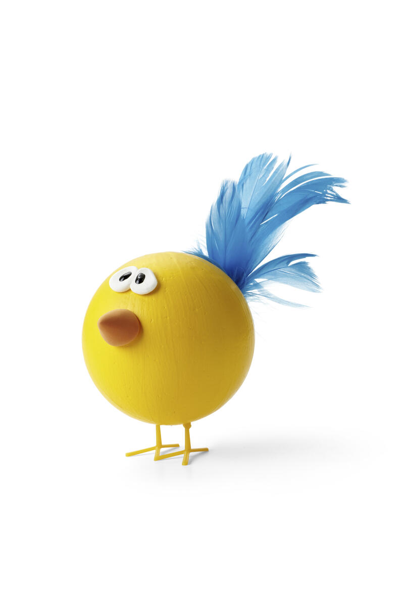 - Forma näbb och ögon i lera. Låt torka enligt anvisningar på förpackningen och limma sedan fast de på kycklingen.