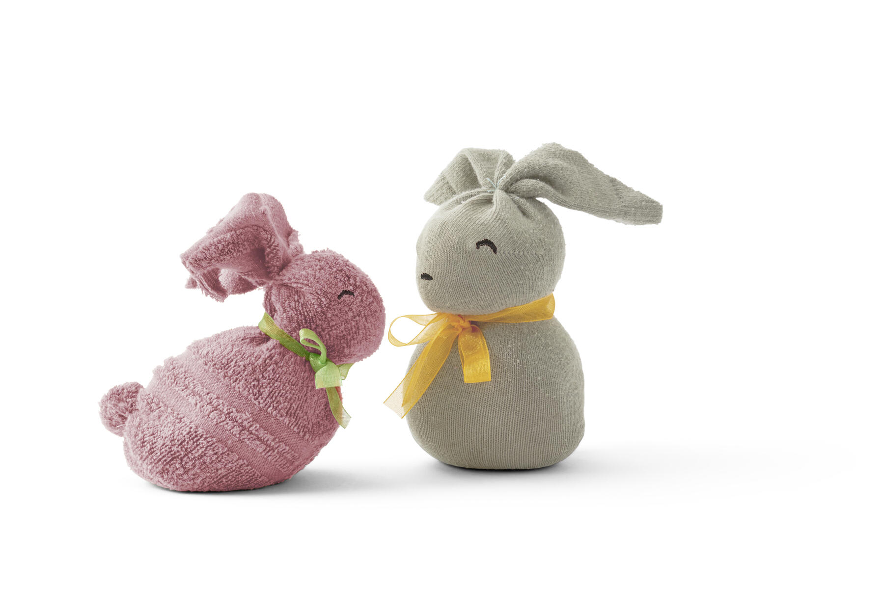 - Knyt ihop en liten svans på kaninen med sytråd.