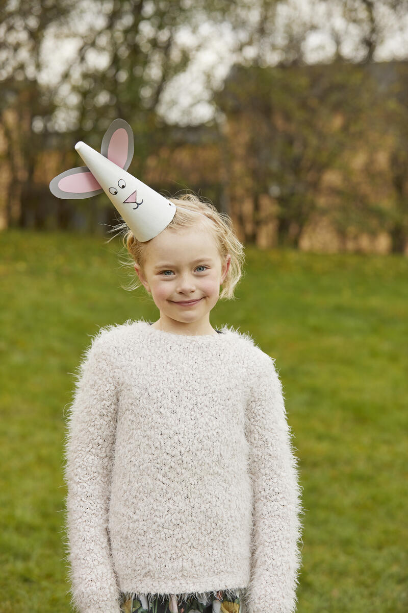 - Klipp ut en nos och limma på konen och måla dit en mun.