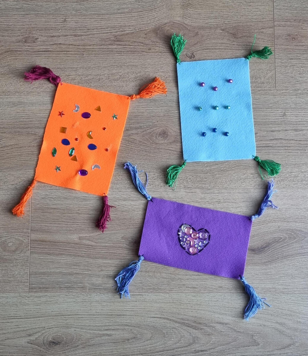 - Brodera, rita, sy fast pärlor eller limma på trådar eller paljetter i mönster om du vill
