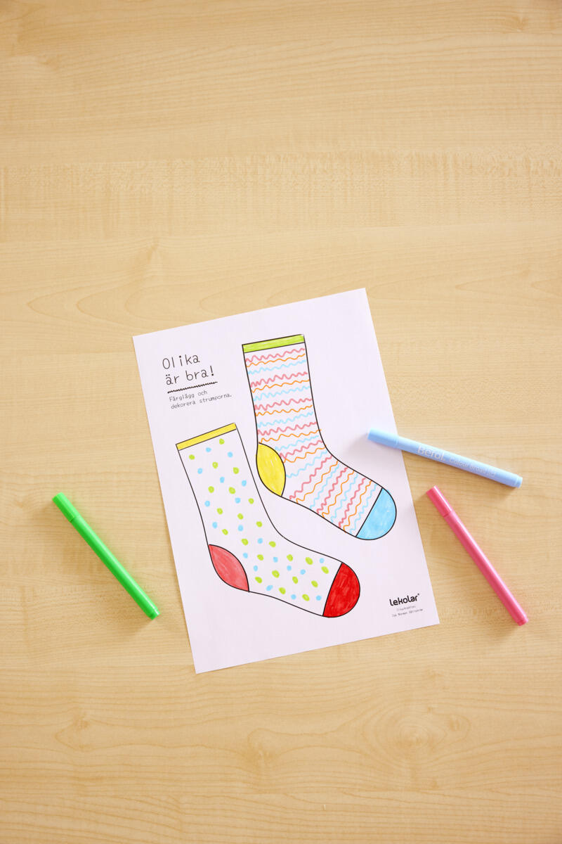 - I samband med att man jobbar med sockorna kan man i samtalen med barnen lyfta allas lika värde, att våra olikheter berikar och att olika är bra helt enkelt!