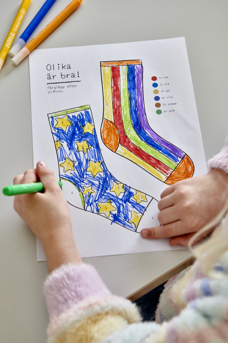 - I samband med att man jobbar med sockorna kan man i samtalen med barnen lyfta allas lika värde, att våra olikheter berikar och att olika är bra helt enkelt!