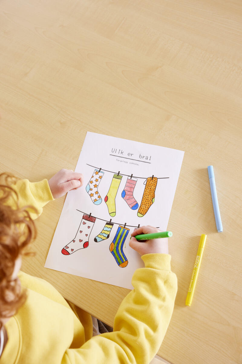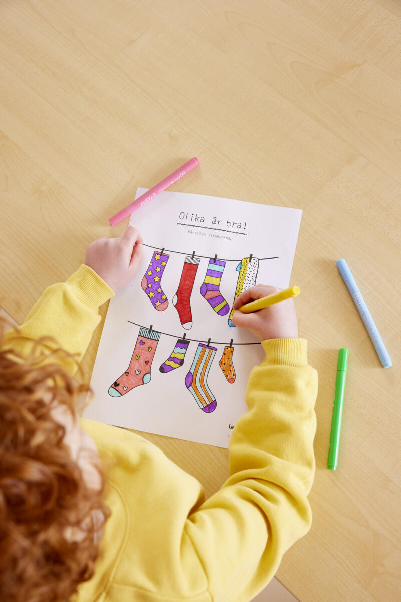 - I samband med att man jobbar med sockorna kan man i samtalen med barnen lyfta allas lika värde, att våra olikheter berikar och att olika är bra helt enkelt!