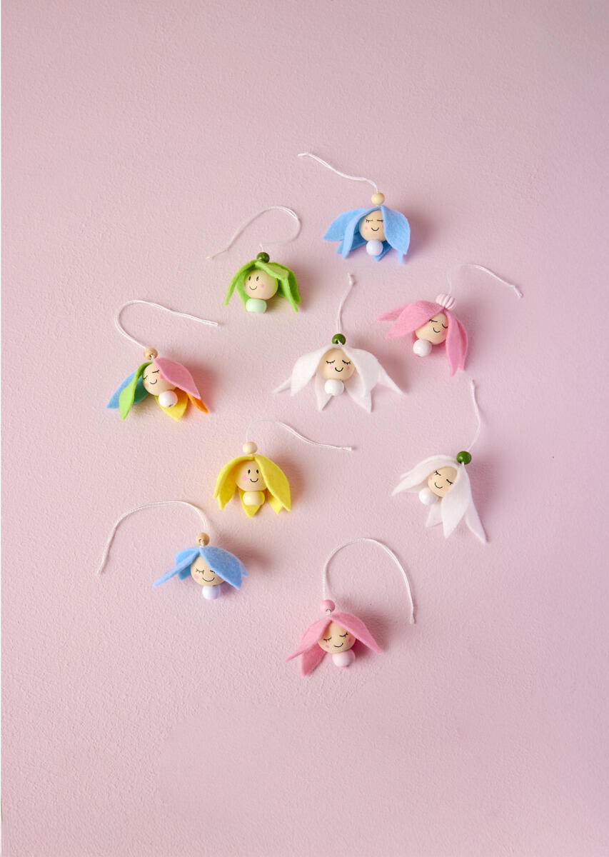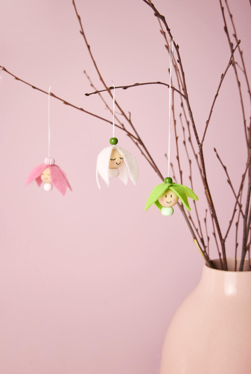 - Klipp ut blomblad av dekorationsfilt. Limma fast blombladen runt kulan men försök ha kvar en öppning precis vid ansiktspartiet.