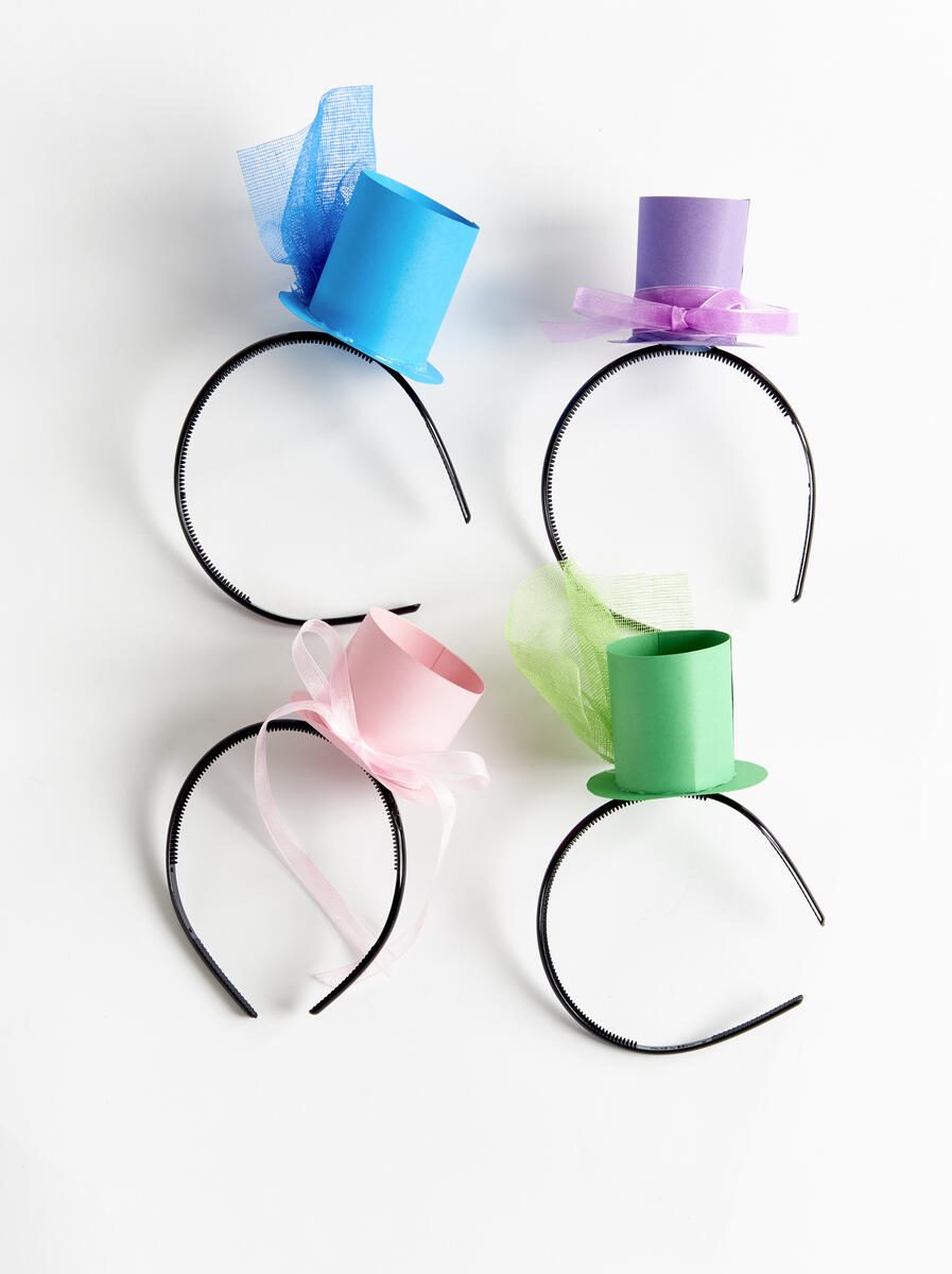 - Dekorera hatten med tarlatanväv och fäst hatten på diademet.