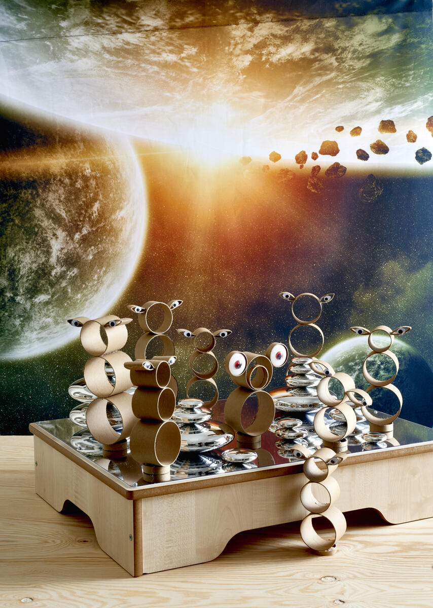 Skär en smal bit av en liten rulle och limma fast i botten som fot så att din alien kan stå stadigt.