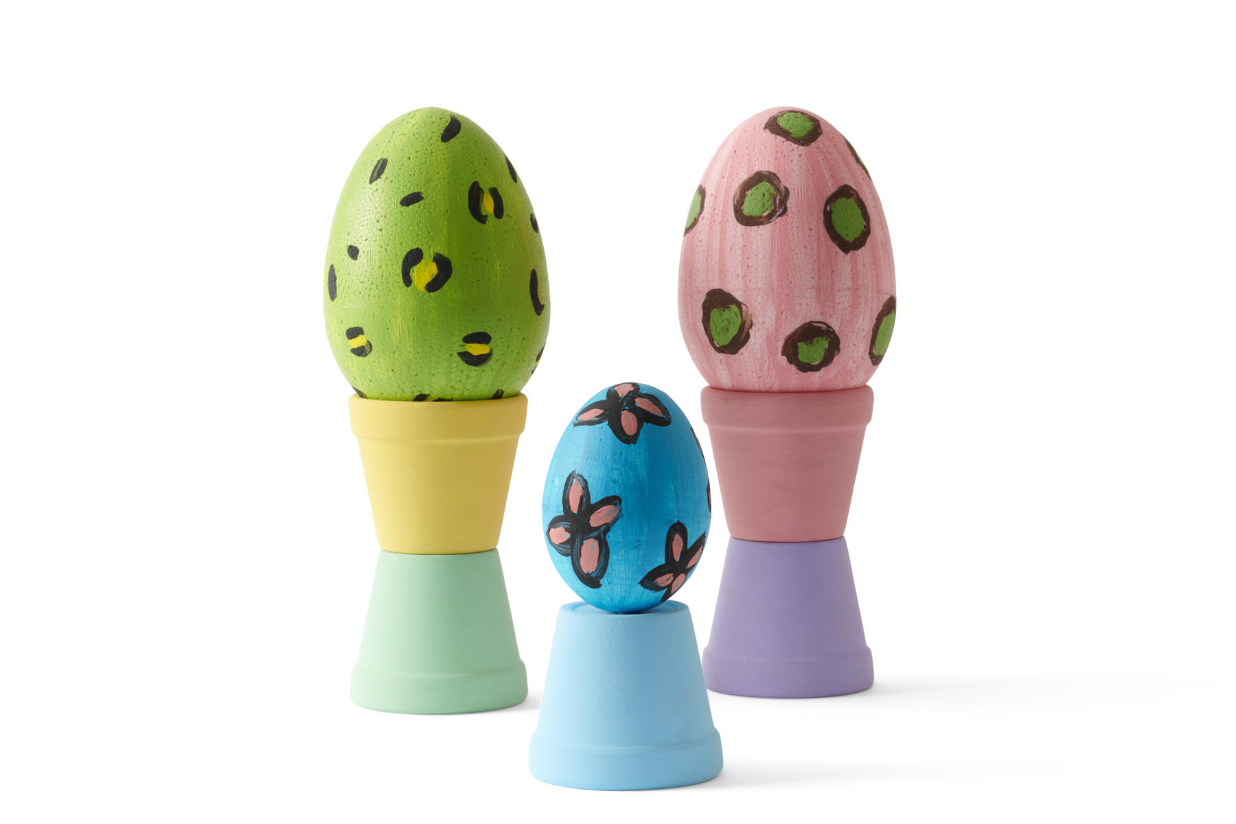 - Måla små krukor i pastellfärg och plascera sedan äggen i eller på krukan.