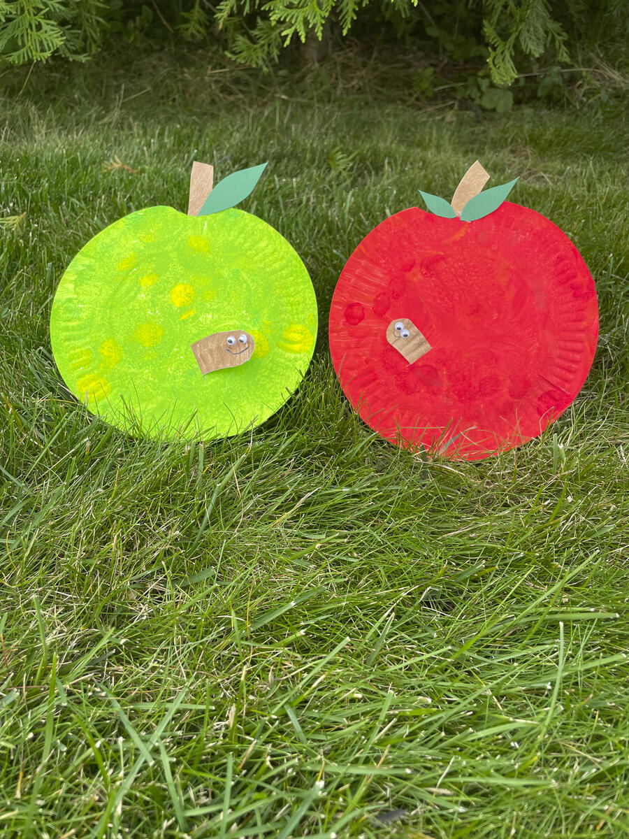 - Ta en bit av den brunmålade assietten och klipp ut en rektangel. Limma fast rektangeln högst upp på äpplet så att den bildar en liten kvist.