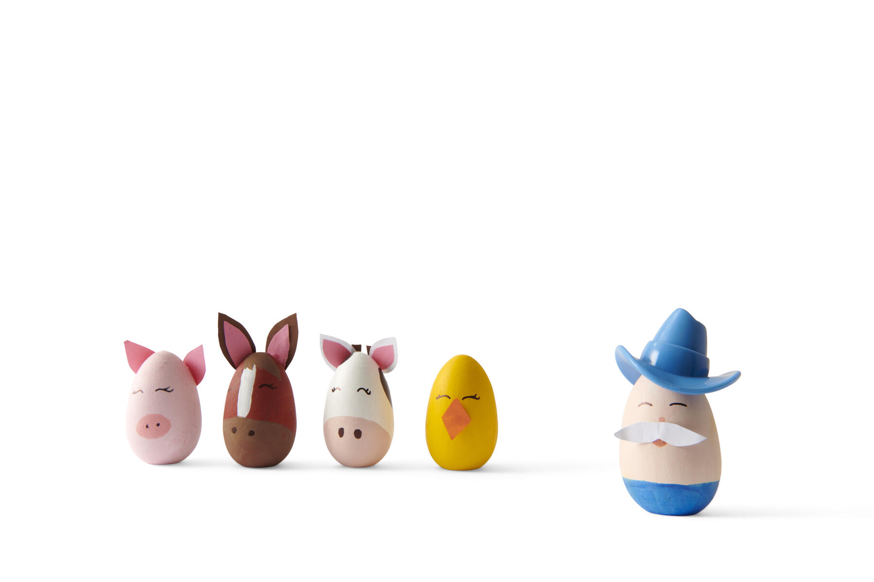 - Grundmåla äggen i olika färger, utefter vilket djur som ska göras. Blanda till färgerna för ljusare nyanser. Låt torka.