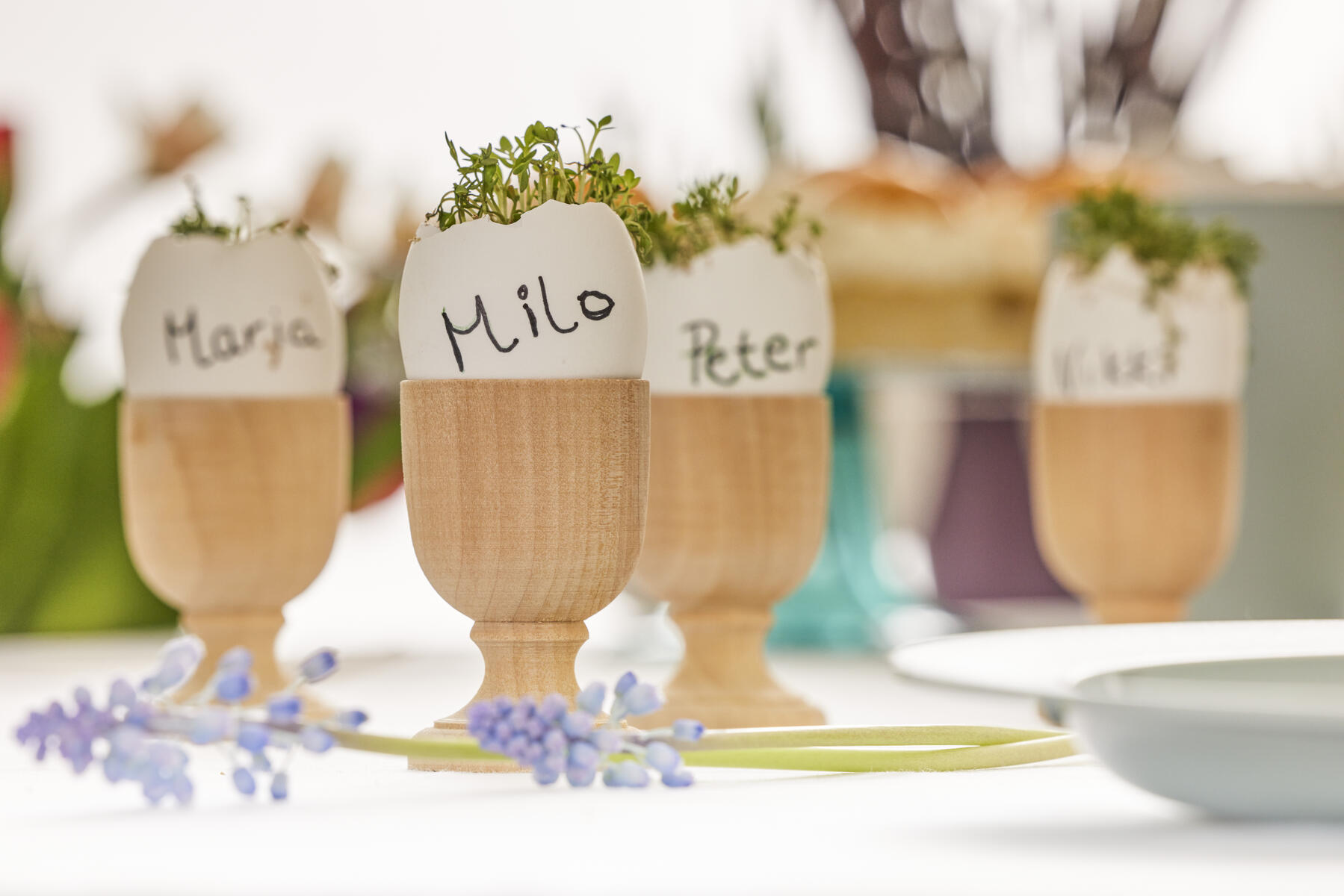- Ställ ägget i en äggkopp och låt krassen växa upp från ägget.