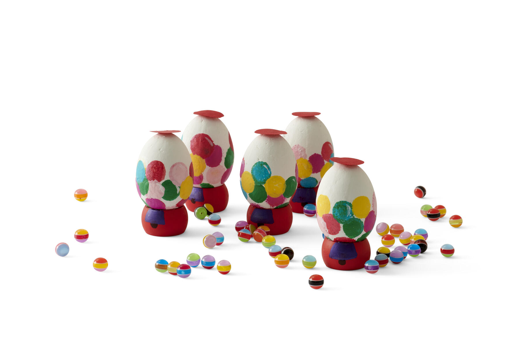 - Klipp en cirkel av rött papper. Limma fast på toppen av tuggummimaskinen.