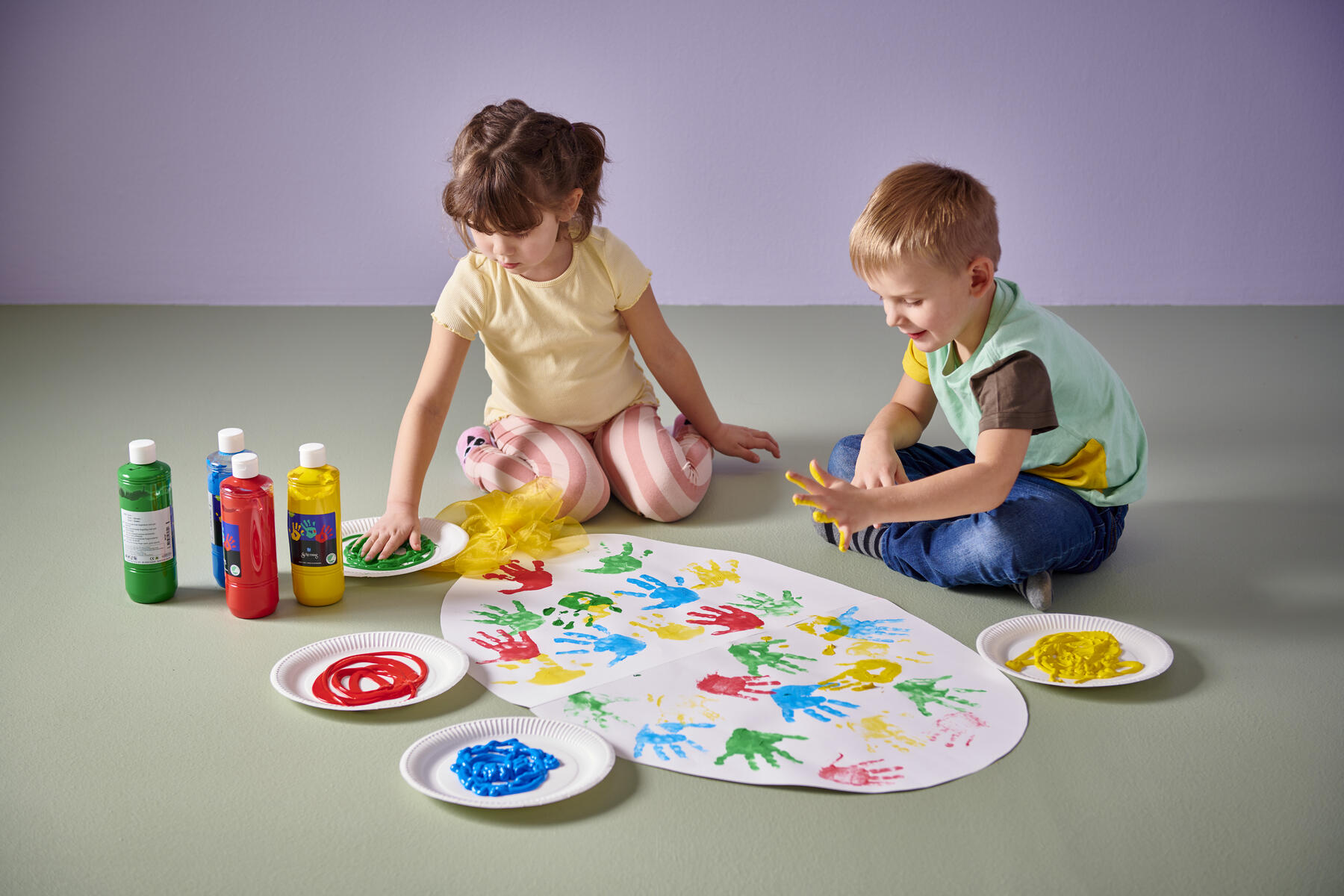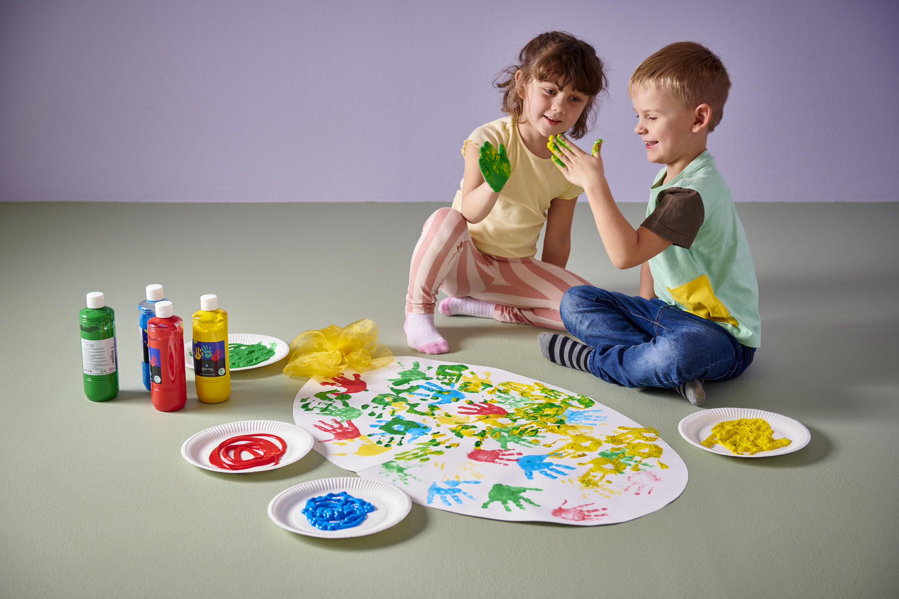 - Måla alternativt doppa händer i olika färger. Tryck på papper.
