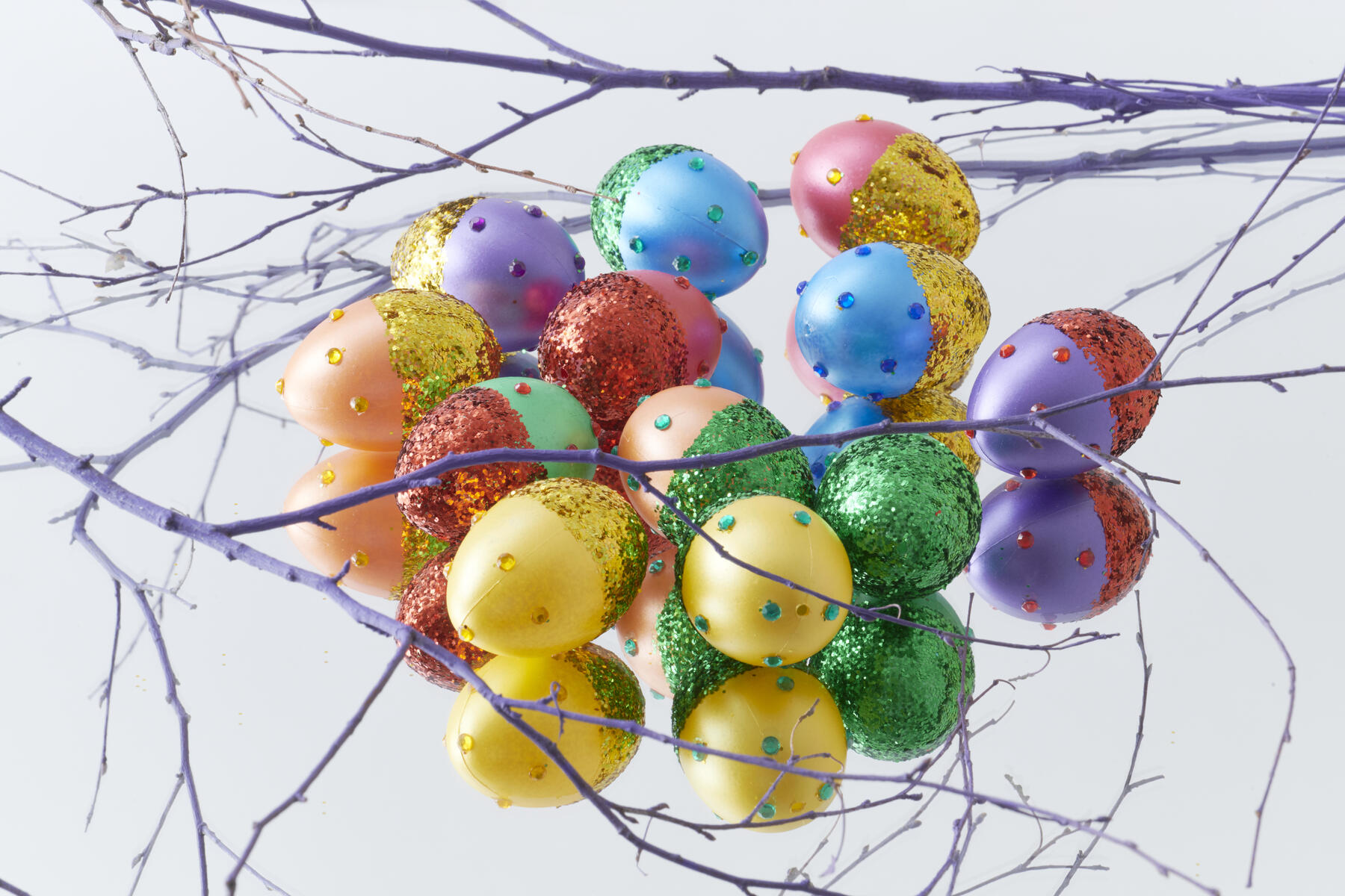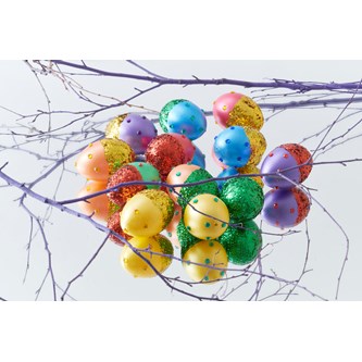 - Pensla halva ägget med Artmedium, häll glitter i en plastmugg och doppa ner ägget i Glittret, skaka av.