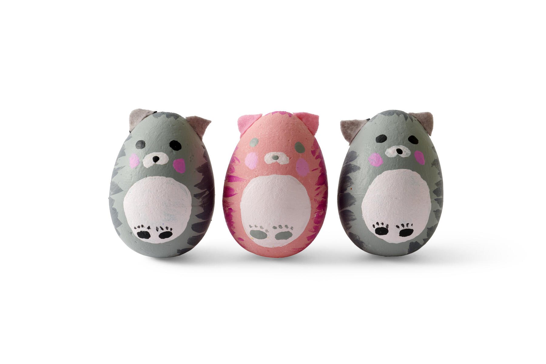 - Måla detaljerna på ägget med en pensel. Låt ”magen” och ”nosen” torka innan trampdynor och ögon målas.