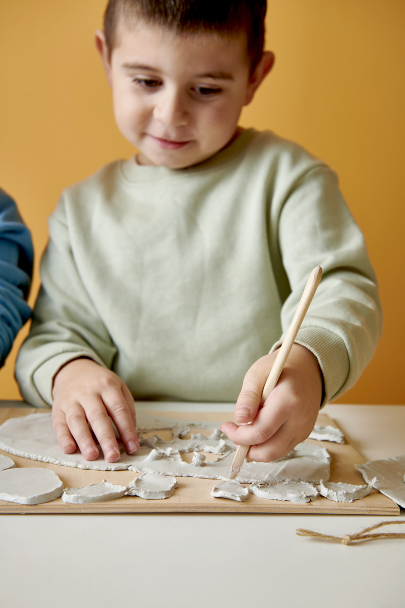 - Platta eller kavla ut en bit lera till önskad storlek.