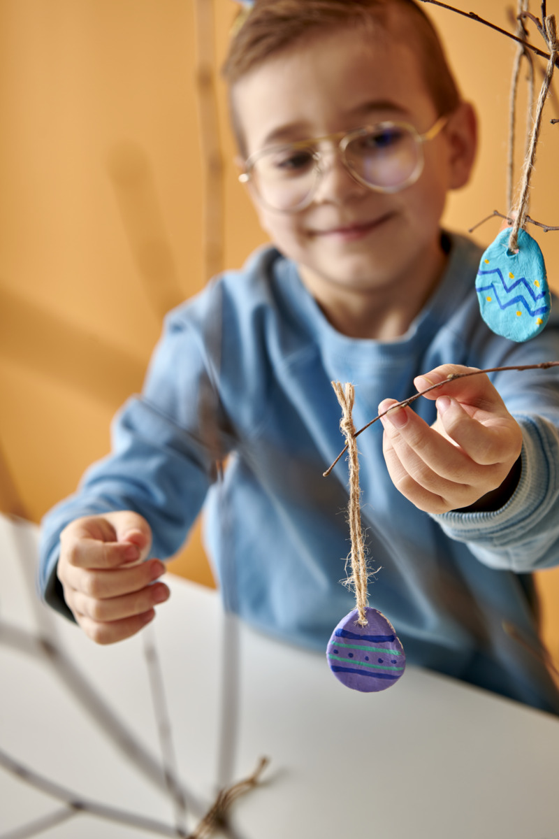 - Trä hampsnöre genom dekorationerna och häng upp dem i påskriset.