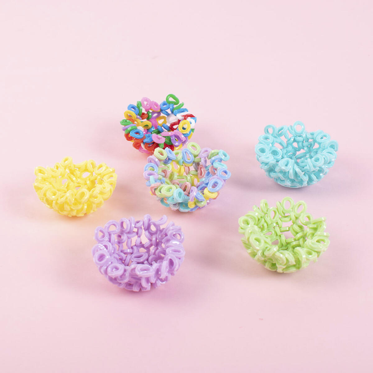 2. 2.Täck formarna med ett lager rörpärlor i valfri färg.