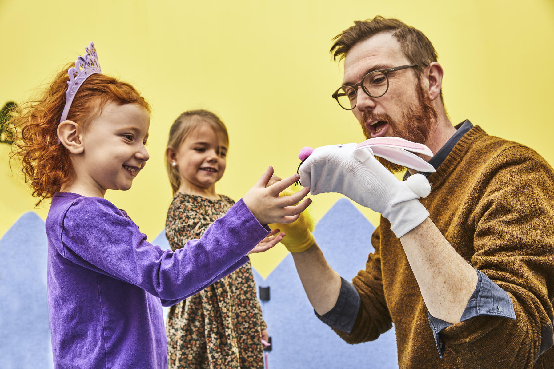 - Kaninen: Limma på en nos av pompom och morrhår av garn.