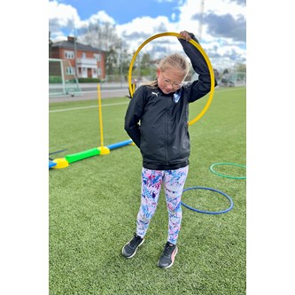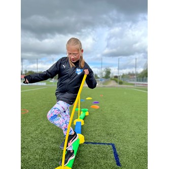 Ställ upp en balansbana och låt barnen ta sig fram utan att nudda marken. Vi tränar upp balans, styrka och stabilitet vilket också leder till bättre koncentrationsförmåga. Rockringarna använder vi för att öva på motorik och rörlighet, ta dig förbi ringarna genom att hoppa in i ringen trä den över huvudet och ta dig till nästa ring osv.