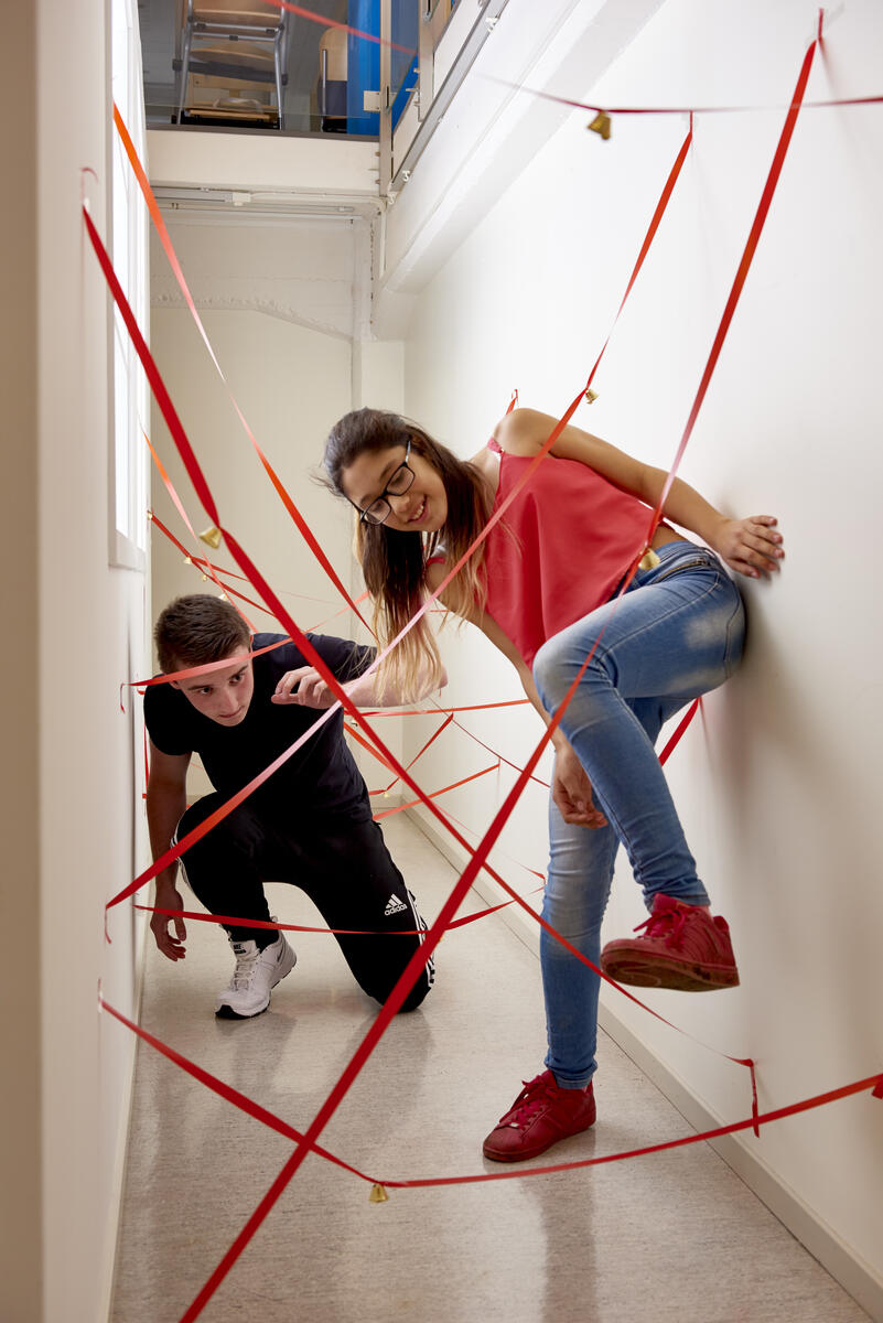 Ett roligt förslag för en aktiv skoldag eller rastaktivitet. Fäst band i olika nivåer mellan två väggar. Trä klockor på banden. Försök att gå genom laserbanan utan att klockorna låter. Vem klarar längst? Är det någon som klarar hela banan utan att klockorna hörs?
