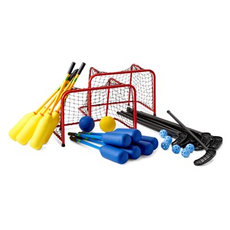 Detta rastpaket kan användas både inom- och utomhus. I paketet ingår 2 mål, 10 bandyklubbor, 6 bandybollar, 12 softhockeyklubbor och bollar till. Observera att du kan köpa hela paketet med produkter på en gång, eller påverka fördelningen själv genom att lägga till produkter i varukorgen en efter en, så att paketet anpassas efter just era behov.