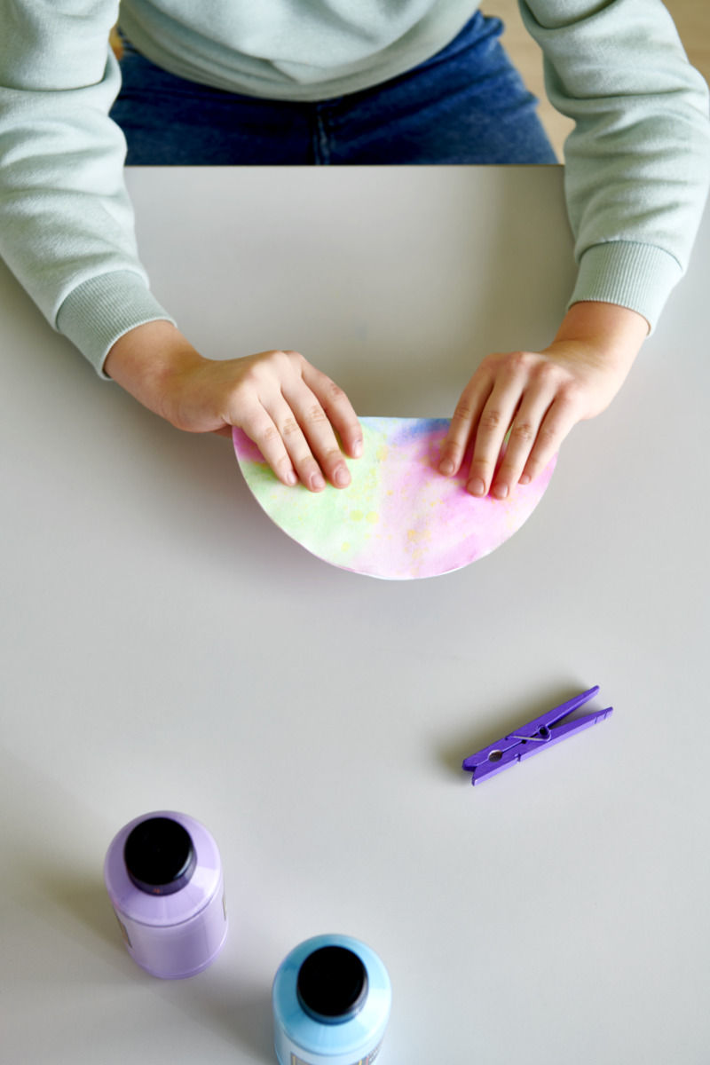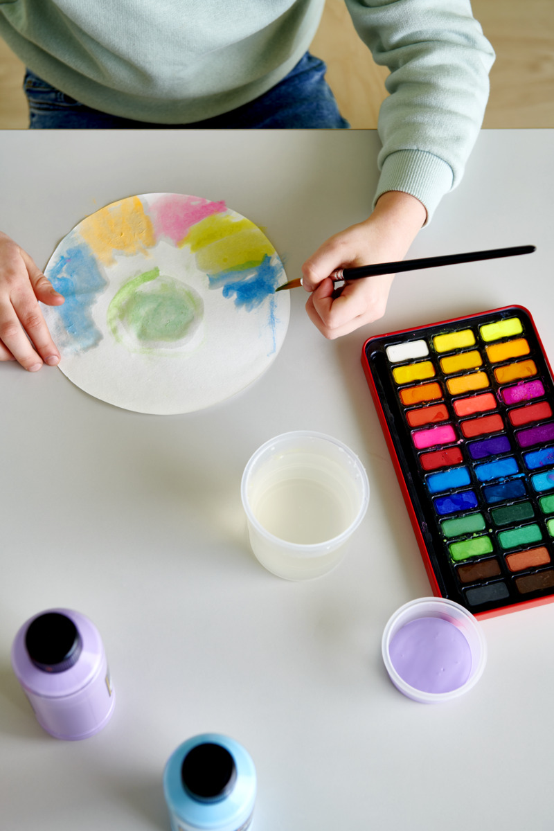 - Ta fram ett filterpapper och måla det med akvarellfärger. Vill man hellre använda fiberpennor så går det också bra.