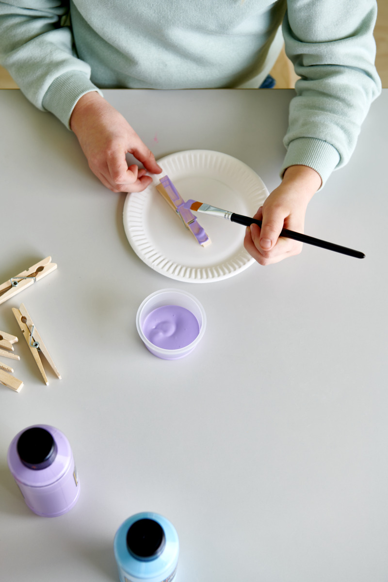 - Måla klädnypan i valfri hobbyfärg och lägg den åt sidan för att torka.