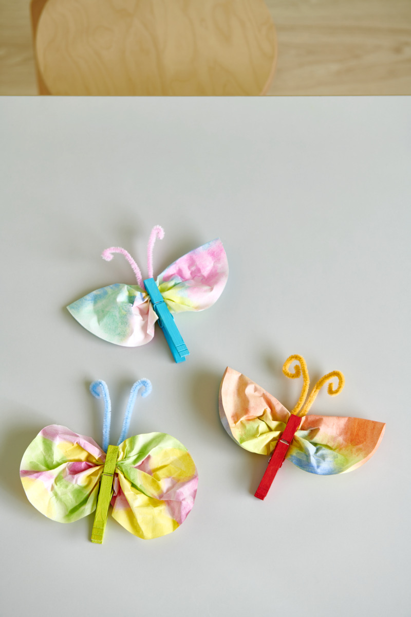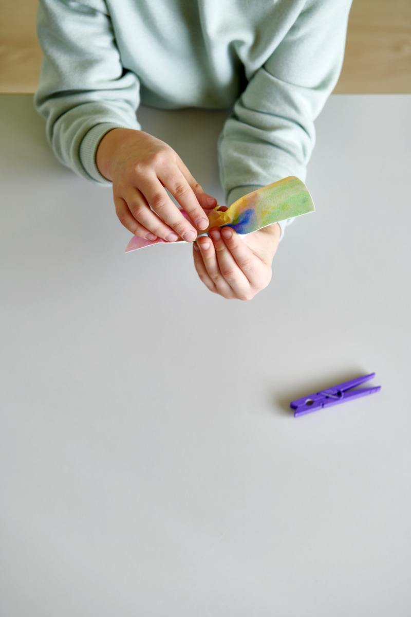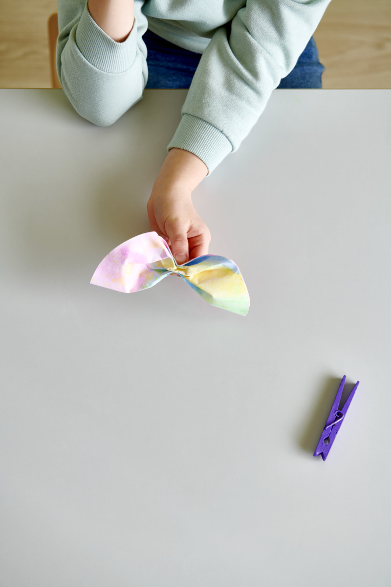 - När filterpappret är torrt, tryck ihop det till två vingar och fäst klädnypan i mitten.