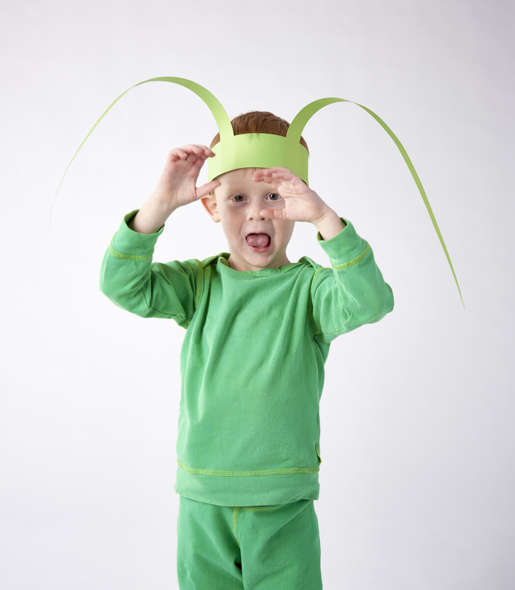 Mät runt huvudet och nita ihop till en "krans" i lagom storlek. Markera ungefär vid tinningarna på kransens ovankant.
