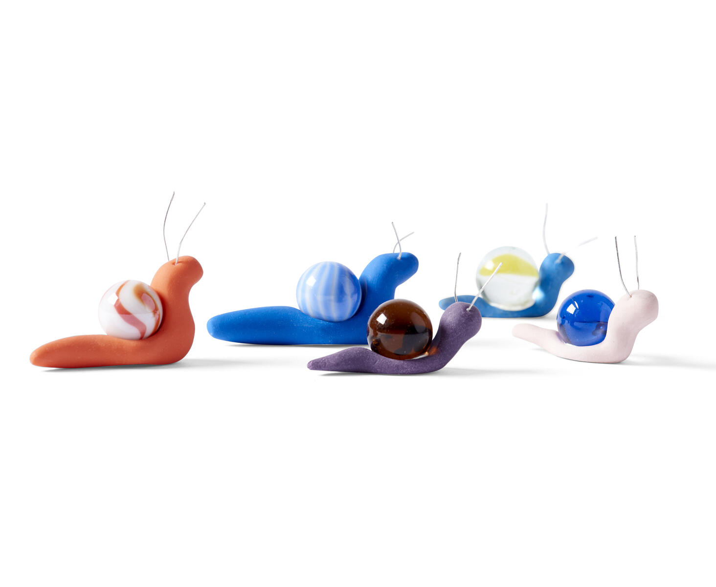 Knipsa av en bit silvertråd till spröt. Tryck i spröten på snigelns huvud.