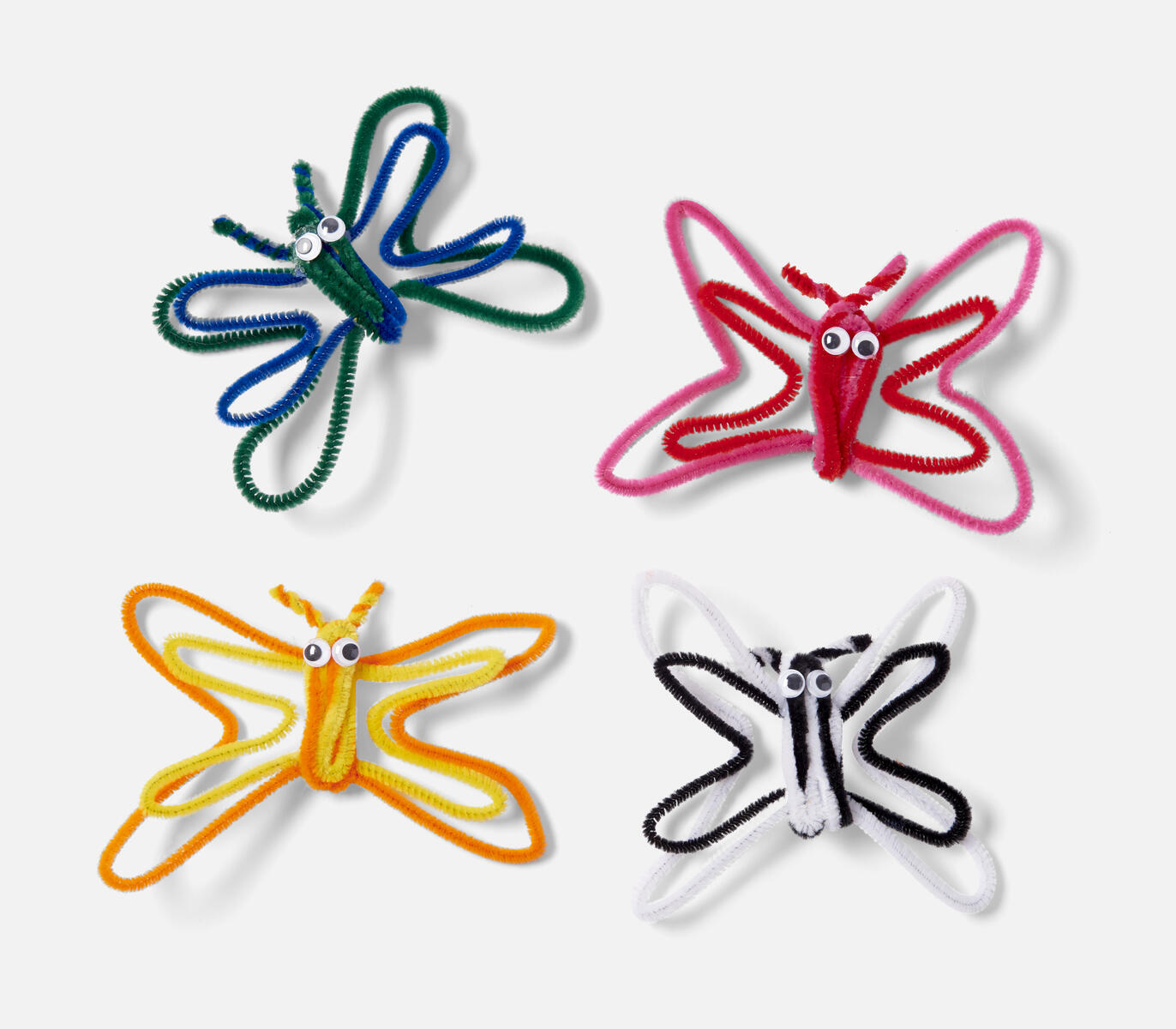Ta två piprensare i olika färger och vik dem dubbelt.