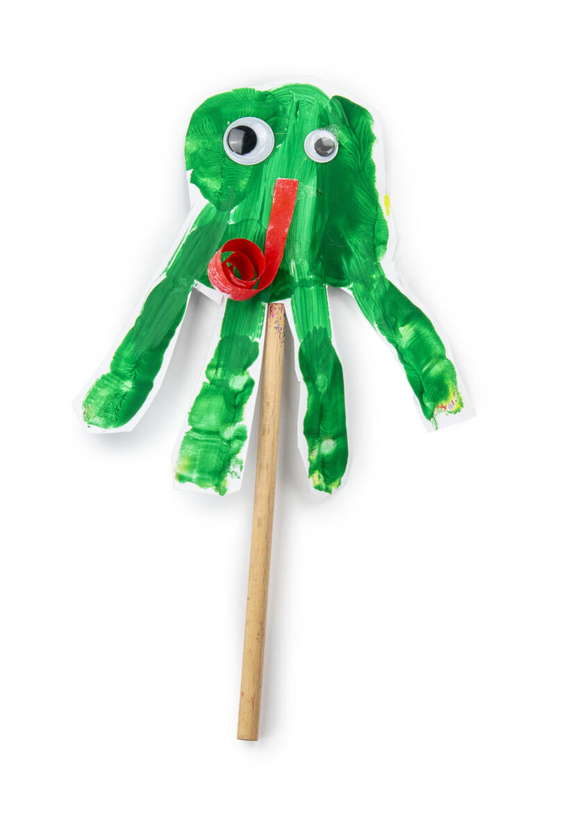 - Klipp ut handflatan och fyra fingrar, klipp bort tummen