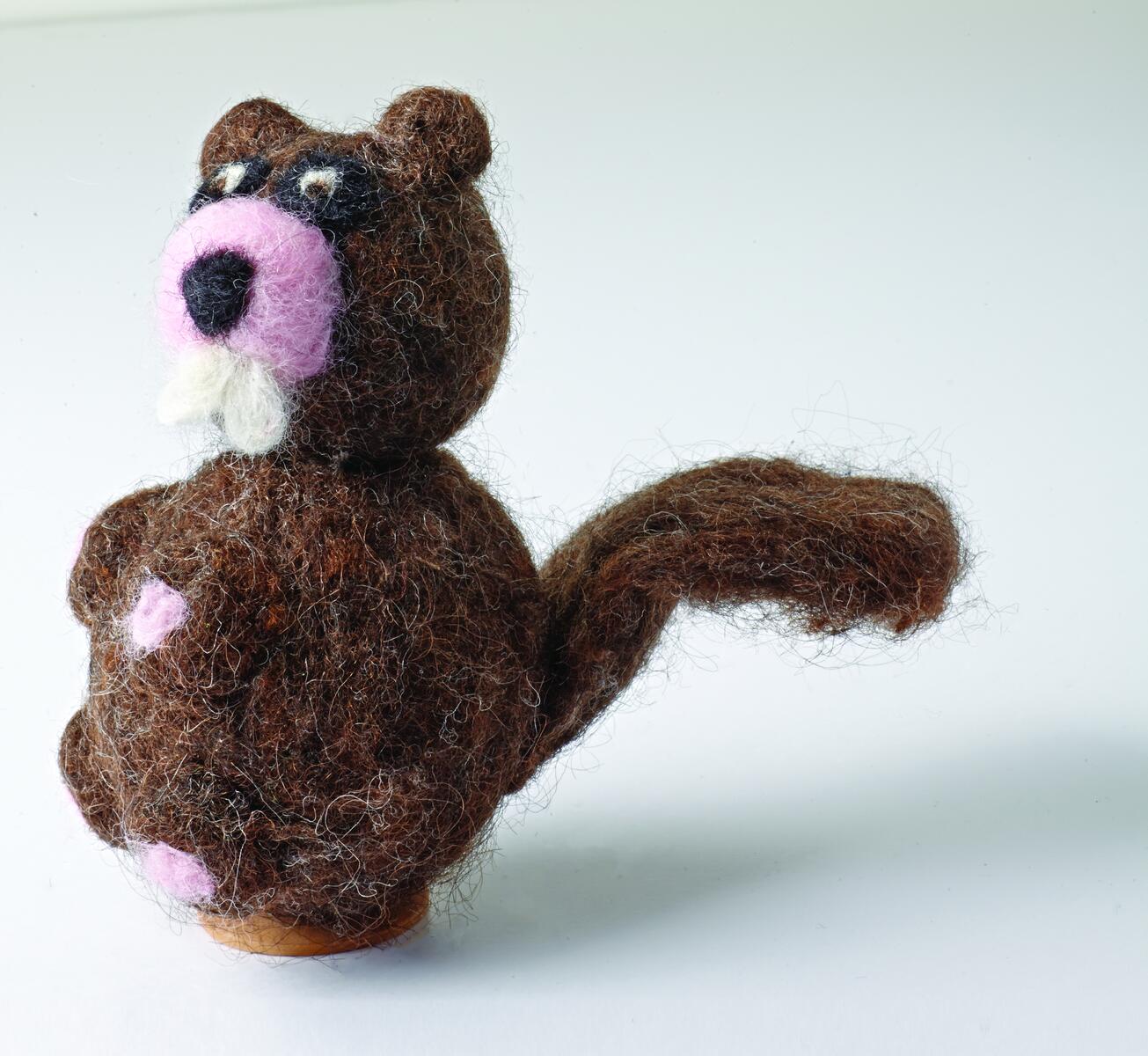 - Forma öron, ben, nos med respektive färg på finullen och tova fast på huvud respektive kropp.
