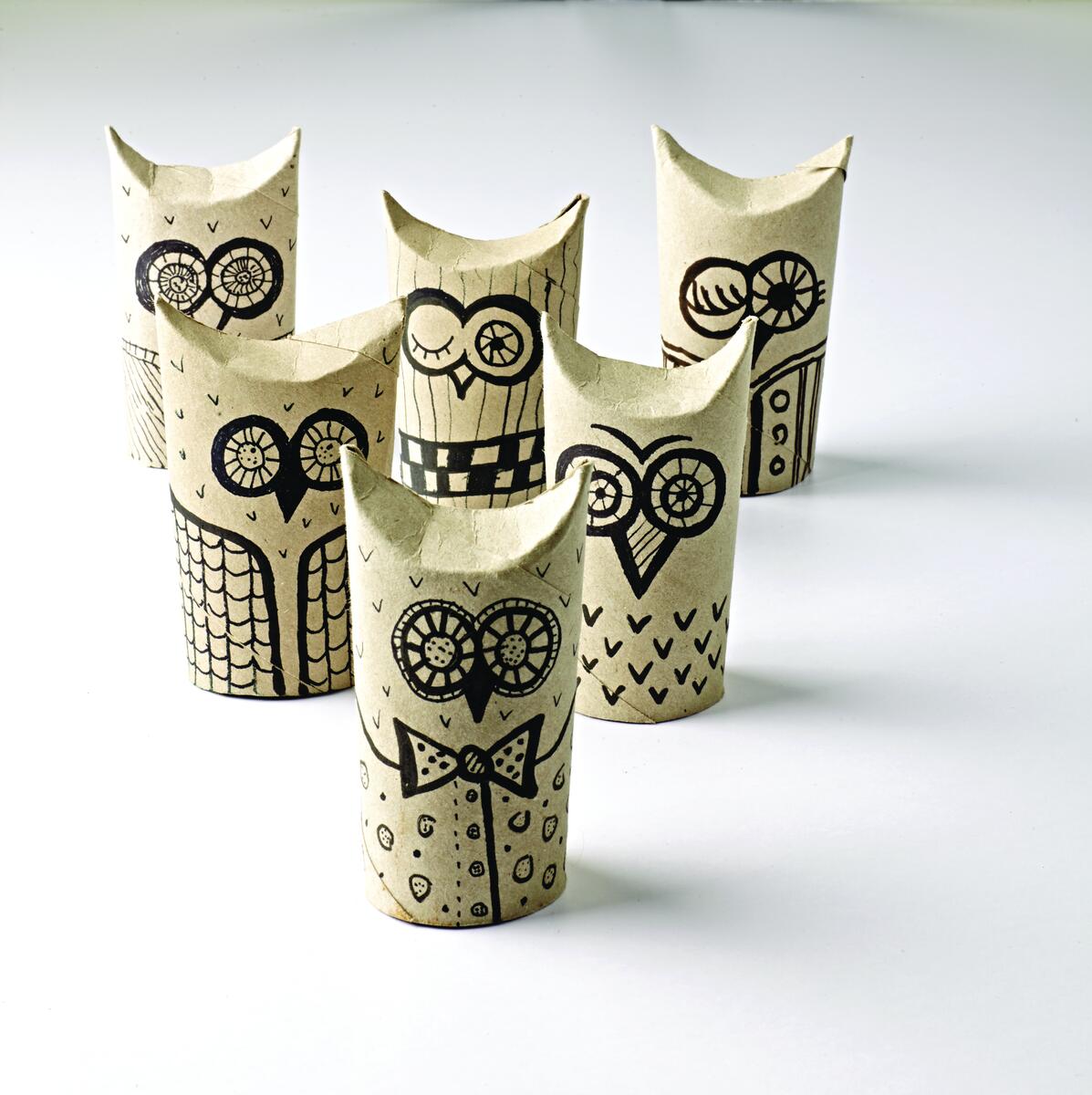 Ugglor av pappersrullar