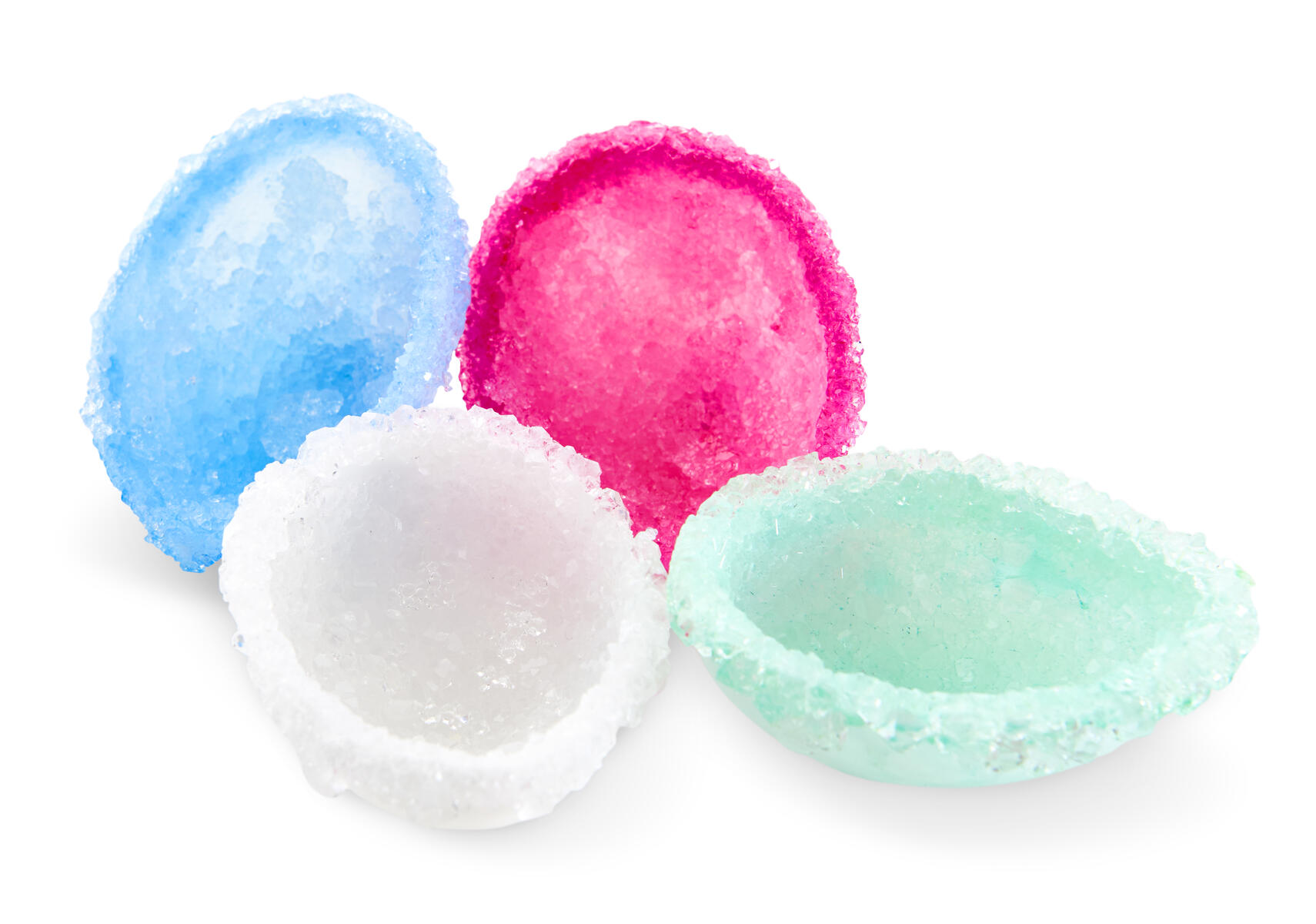 1. Pensla insidan och kanten av ägghalvan med lim, stö över