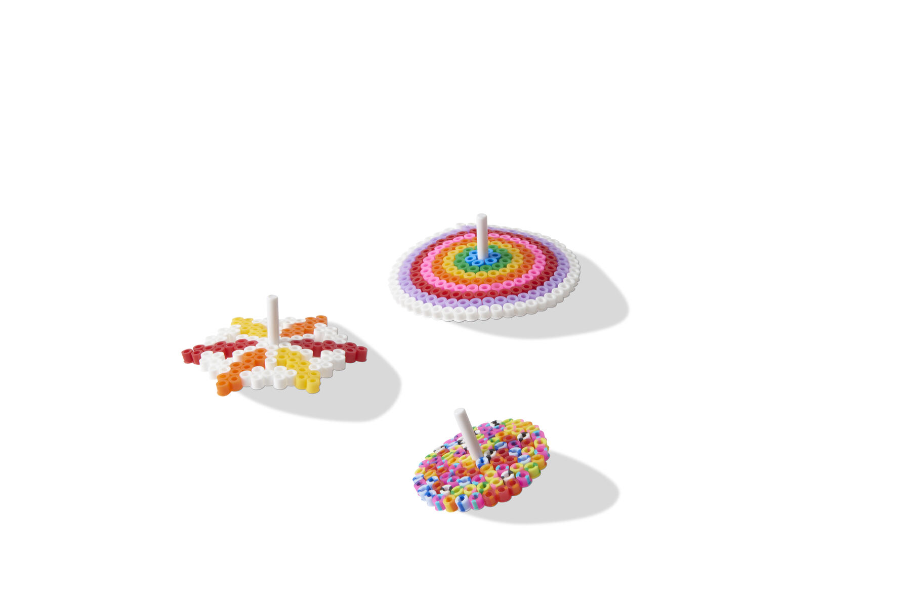 Till dessa snurror kan pärlor i alla olika former och färger pärlas.