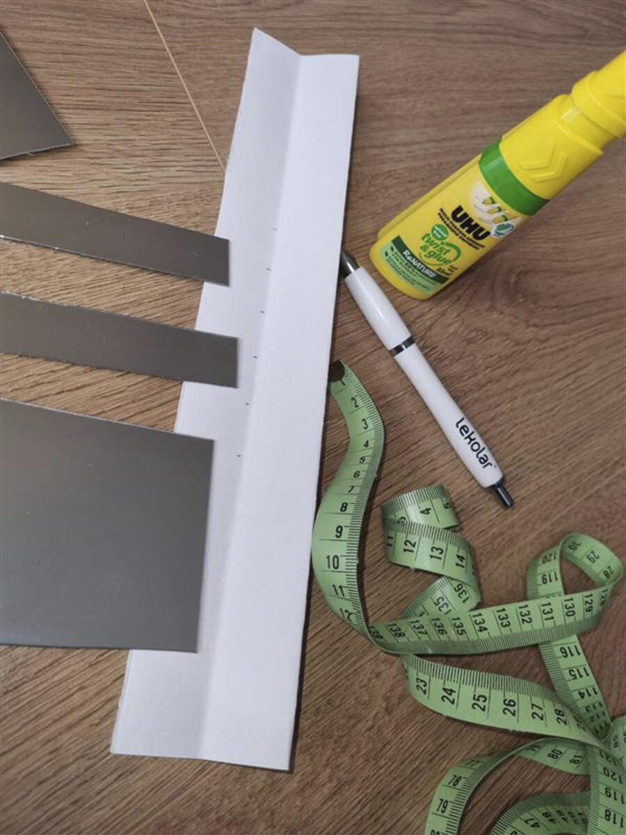 - * Ta ett A4-pappersark och vik på längden, vik på mitten så många ggr det behövs för att få en stabil ram (beror på papprets tjocklek). Du behöver två kantlister, detta kommer bli ramen som håller ihop speglarna.