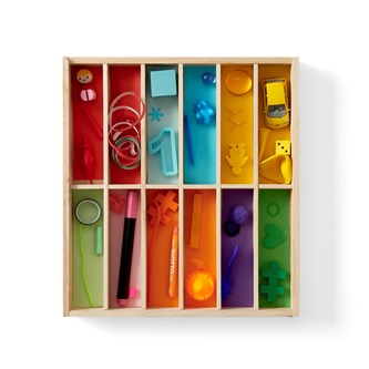 - Hitta en lämplig låda med fack, vi använder oss av en pennlåda