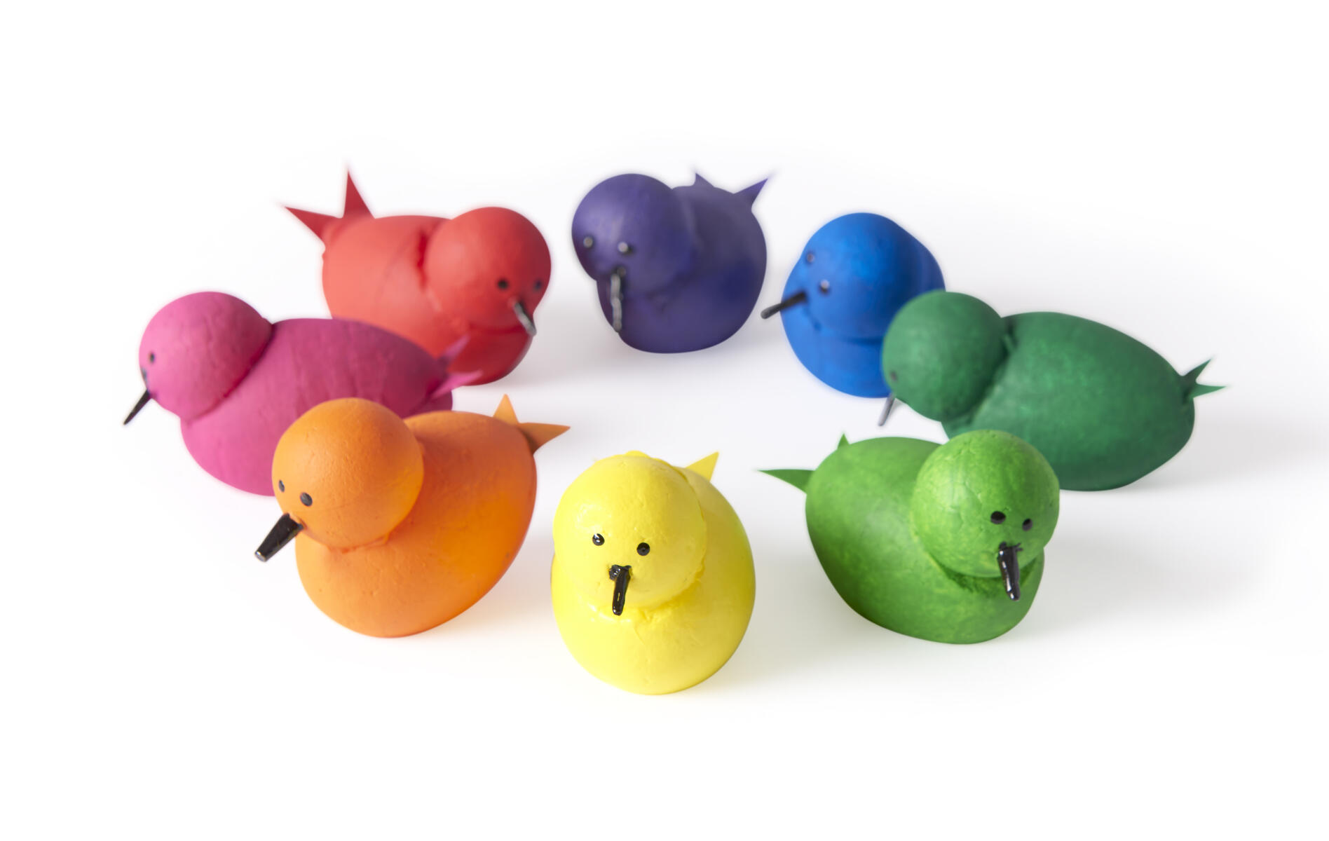 - Måla varje fågel i önskad färg; använd färgerna som de är eller undersök olika färgblandningar. Fågeln behöver målas två gånger. Låt torka ordentligt.