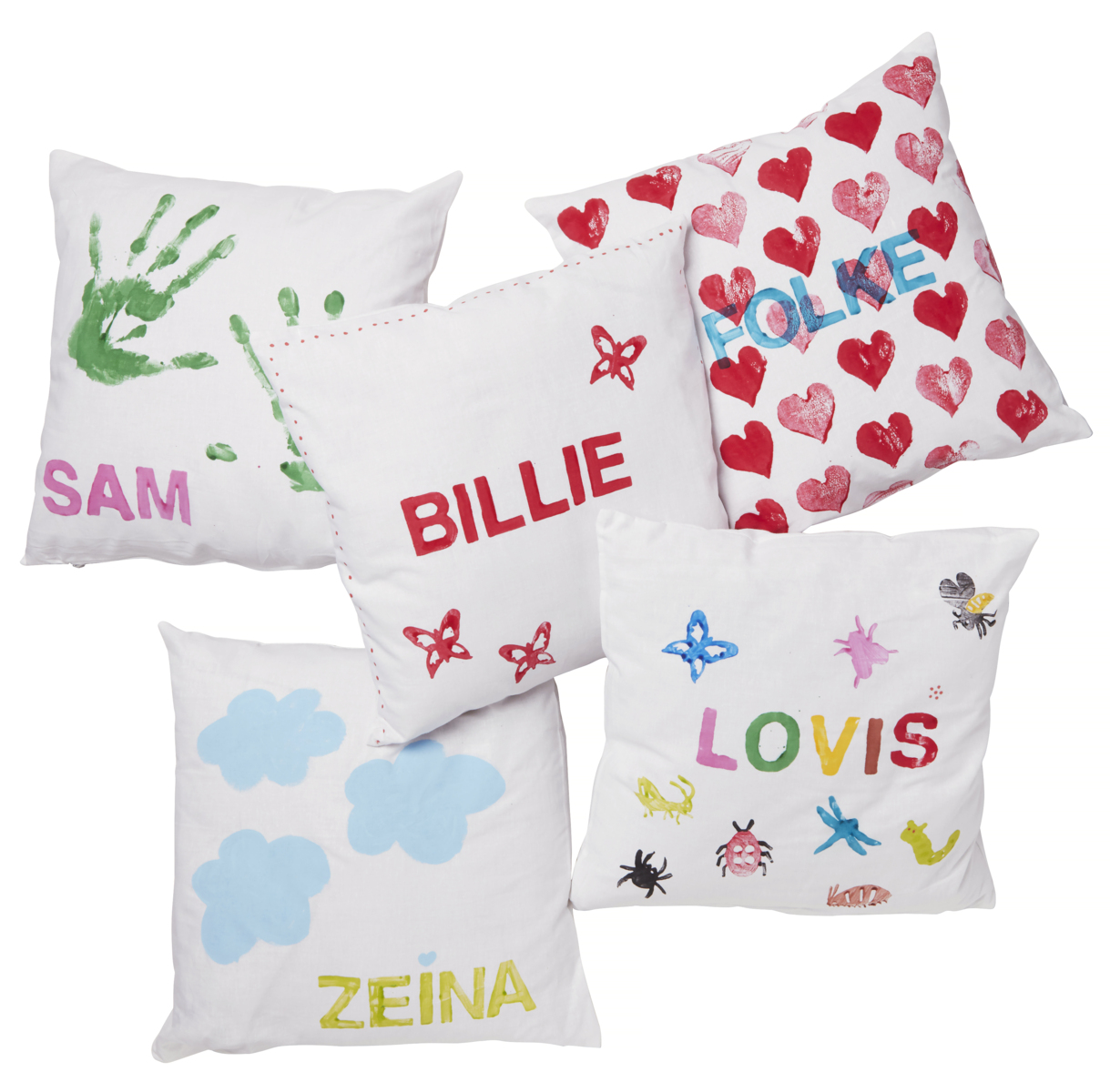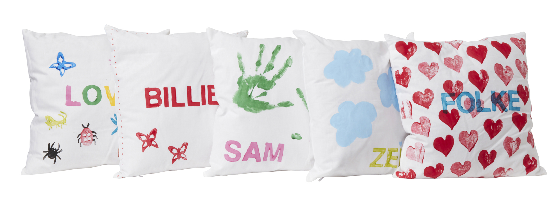 - Använd alfabetsstämplar för att trycka ditt namn eller annan personlig text på kuddöverdraget.