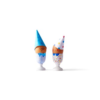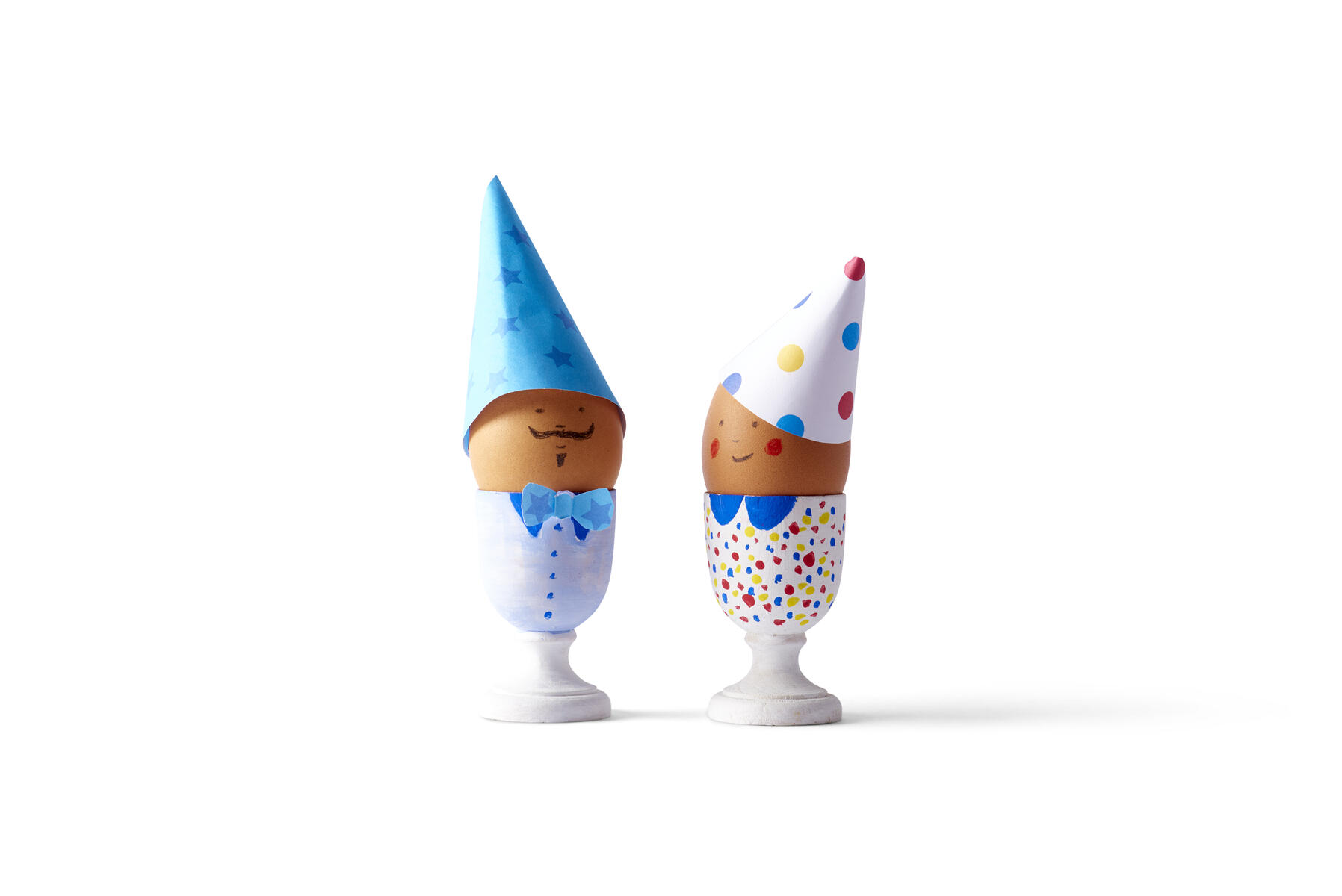 - Sätt i bruna ägg i äggkoppen och måla ansikte på dem.