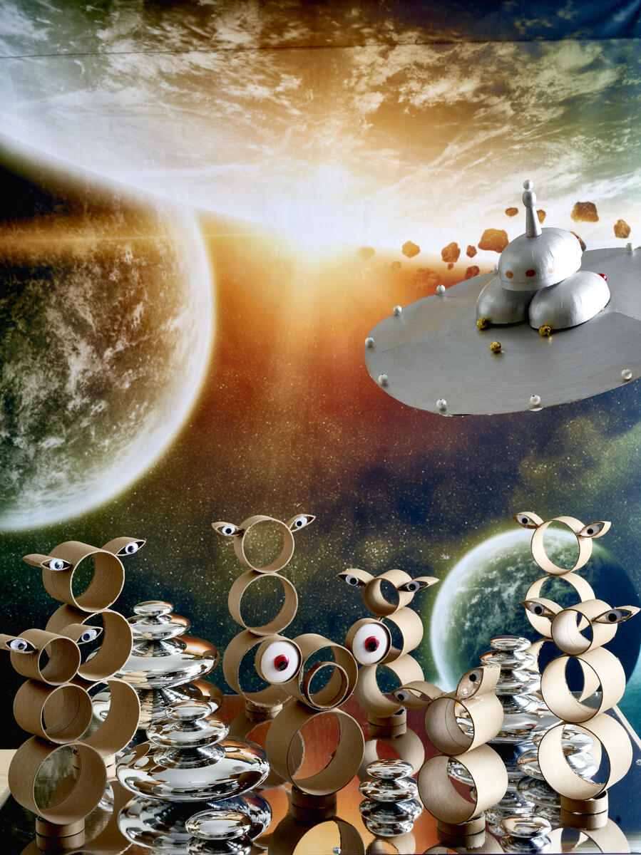 Klipp ut en stror cirkel i kvistpapper. Måla det i silver.