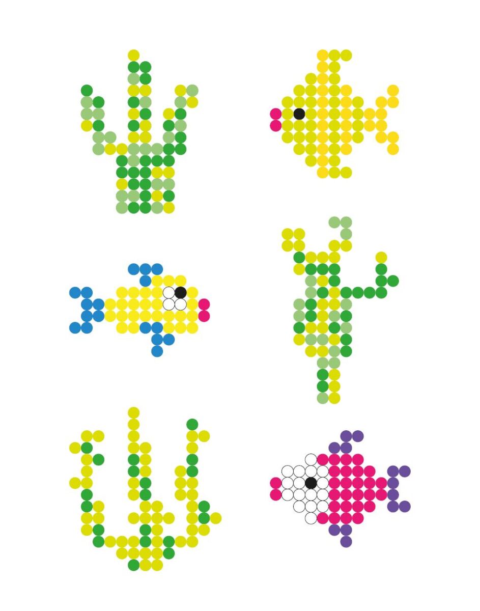 - När ni skapat pärlbrickorna, limma fast med limpistol i burk eller tittskåp för att skapa er egen pärlade fiskvärld.
