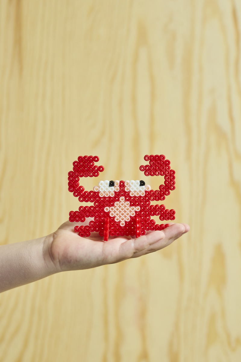 - Placera bakplåtspapper och stryk med strykjärn tills alla pärlorna smälts ihop. OBS! Ta hjälp av en vuxen när du ska stryka. Både strykjärnet och pärlorna blir mycket varma. Lägg något tungt över och låt dem svalna. Vill man undvika värme kan man istället använda limark för att hålla ihop pärlorna.