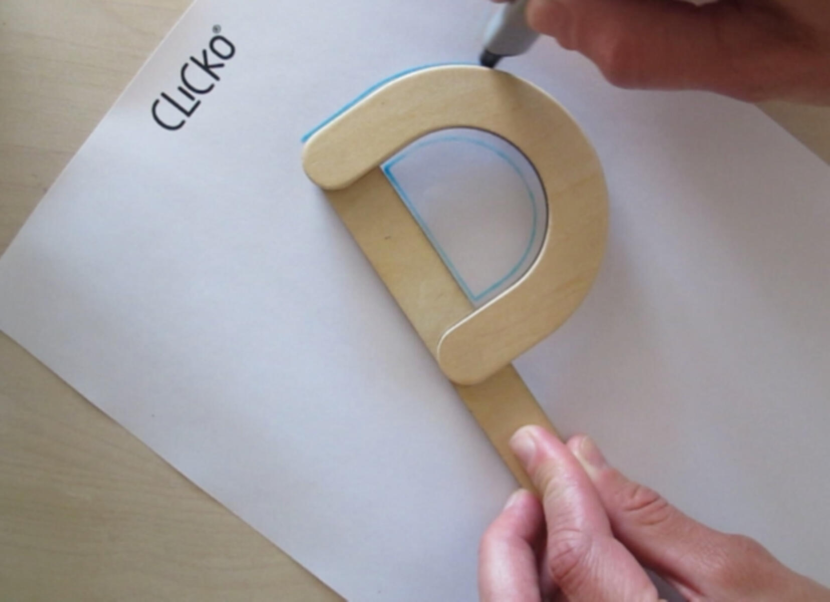 - Lär känna bokstaven och dess former genom att jobba med den på olika sätt. Börja med att bygga bokstaven med trädelarna från Clicko. Lägg sedan den färdigbyggda bokstaven på ett papper och rita längs konturerna. Därefter färglägger ni bokstaven. Klipp sedan ut den.