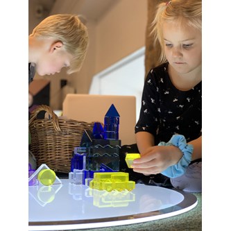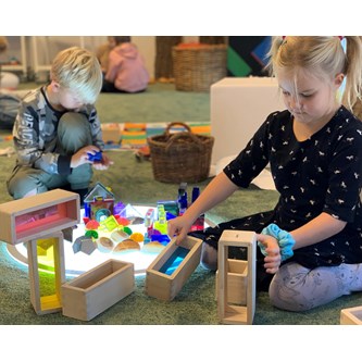 2. Gruppera barnen och be ett barn bygga något, gärna på ljusbordet för att förstärka den sinnliga upplevelsen.