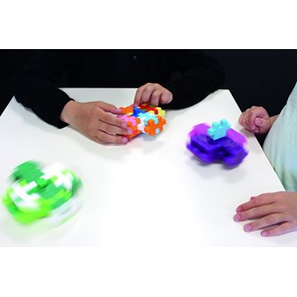 - Bygg ihop en PLUS-PLUS spinner enligt instruktionen och skriv ut underlaget för rörelse.